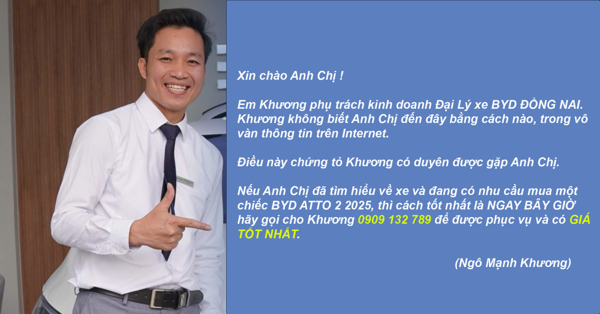 👉 Nếu Anh Chị đang quan tâm đến mẫu xe BYD ATTO 2 2025 thì NGAY BÂY GIỜ là thời điểm tốt nhất để sở hữu! Đầu năm, BYD Đồng Nai đang có nhiều ưu đãi hấp dẫn!